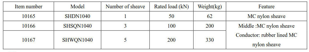 Dimension of block ( outside diameter× root diameter × sheave width) Φ1040×Φ900×125(mm).